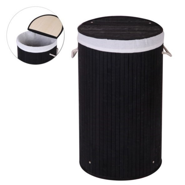 ÇAMAŞIR SEPETİ BAMBU YUVARLAK KAPAKLI SİYAH