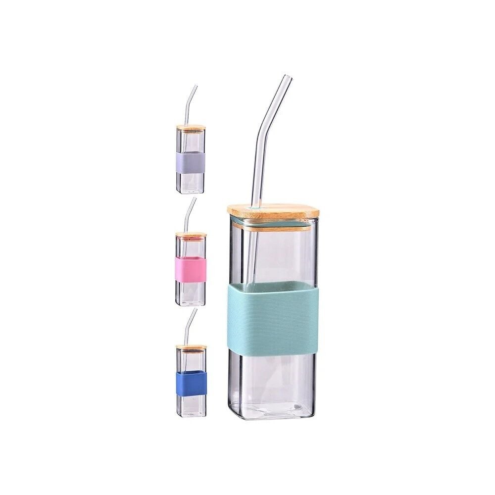 KUPA CAM PİPETLİ BAMBU KAPAKLI KARE 400ML