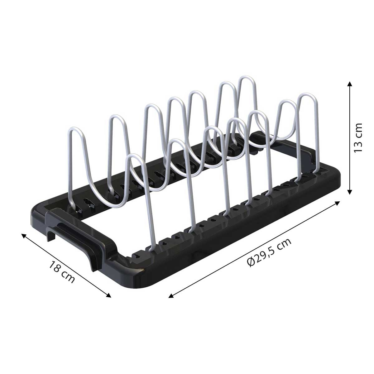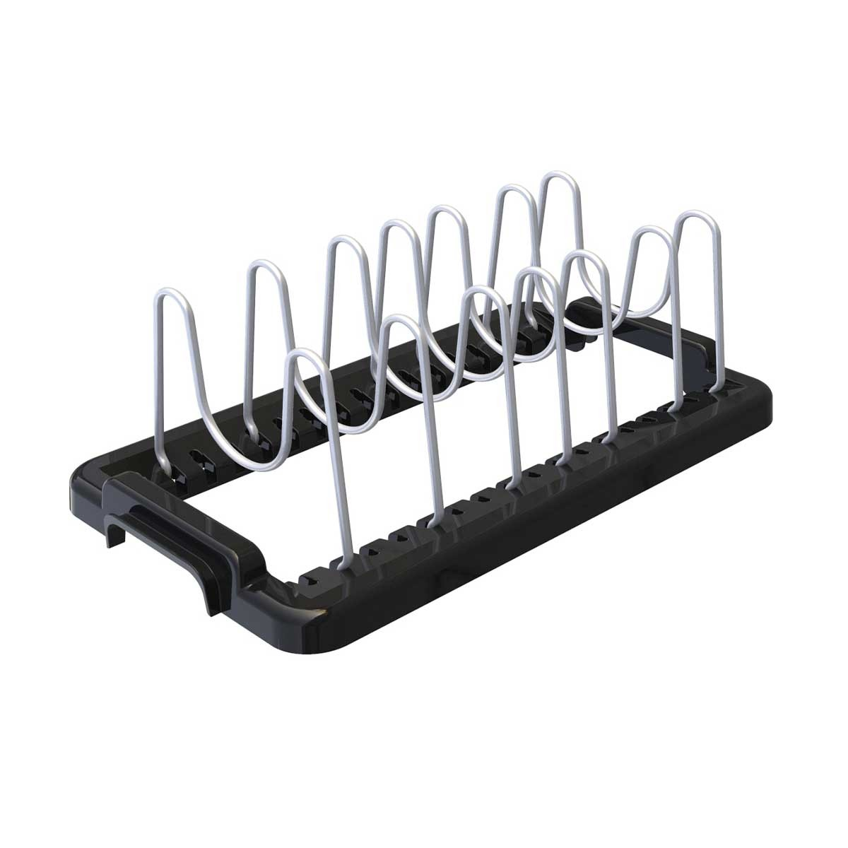Tencere kapağı, tava, tepsi gibi mutfak gereçlerini düzenleyebilirsiniz. Parçalar dik konulduğundan dolayı erişim kolaylaşır Metal teller ağır ürünlerin dizilmesini sağlar. Ayarlı delikler sayesinde, farklı boyuttaki ürünler konulabilir. Düzenleyiciler uç uca eklenerek uzatılabilir