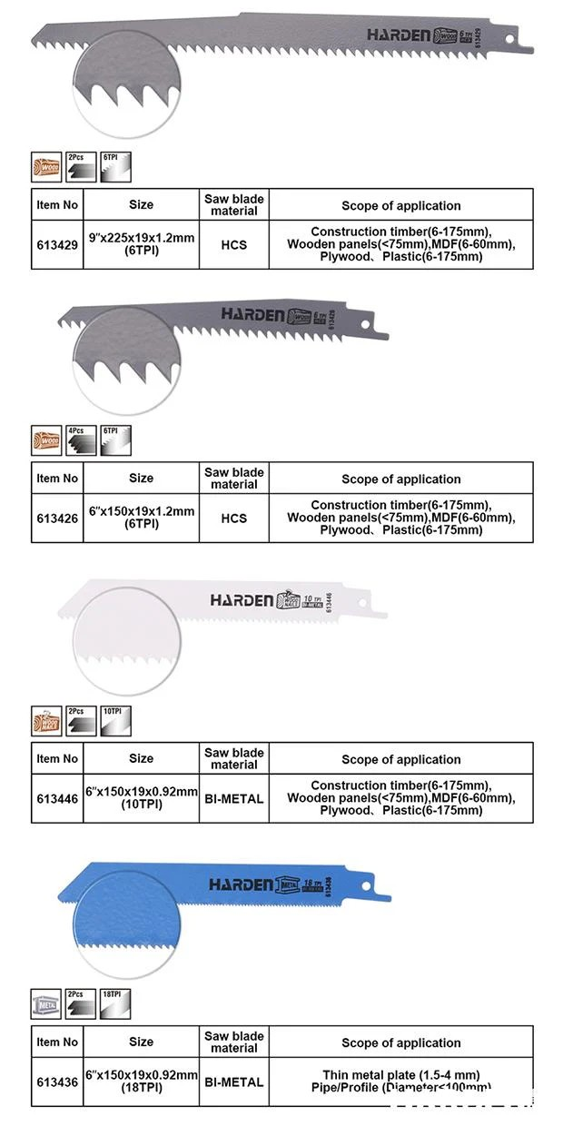 Malzeme: 65Mn, Ahşap kesimi için 2 Parça 6" x 19 x 0.92 mm (18 TPI),